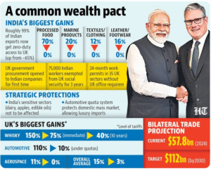 - 2023–24 में भारत–ब्रिटेन के बीच ₹4.74 लाख करोड़ का व्यापार हुआ। इस समझौते के बाद यह 2030 तक ₹10.33 लाख करोड़ तक पहुंच सकता है।