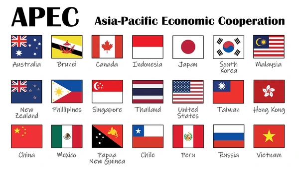 एशिया-प्रशांत आर्थिक सहयोग (APEC) की स्थापना 1989 में की गई थी। यह 21 अर्थव्यवस्थाओं का एक क्षेत्रीय मंच है जिसका उद्देश्य संतुलित, समावेशी, सतत और नवोन्मेषी विकास को बढ़ावा देना है, साथ ही एशिया-प्रशांत क्षेत्र में आर्थिक एकीकरण को आगे बढ़ाना है।