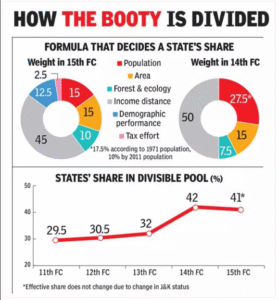 - “उत्तर–दक्षिण” विभाजन: कर्नाटक, तमिलनाडु और महाराष्ट्र जैसे राज्य तर्क देते हैं कि वे केंद्रीय कर राजस्व में असमानुपातिक रूप से अधिक योगदान देते हैं, लेकिन कर-वितरण (tax devolution) के माध्यम से उन्हें अपेक्षाकृत कम हिस्सा मिलता है। दक्षिणी राज्य जनसंख्या को मानक बनाए जाने की आलोचना करते हैं। उनका कहना है कि जनसंख्या नियंत्रण और आर्थिक वृद्धि को सफलतापूर्वक लागू करने के कारण उन्हें “दंडित” किया जा रहा है, जबकि “असफल” राज्यों को अधिक धन मिल रहा है।