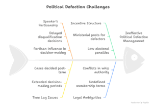 7. संस्थागत अपारदर्शिता और भूमिका की अस्पष्टता:निर्णय में देरी करने वाले स्पीकरों के लिए कोई दंड या अनुशासनात्मक प्रक्रिया निर्धारित नहीं है।