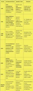 1. संरचनात्मक पक्षपात और राजनीतिक अधिग्रहण:स्पीकर का चुनाव सत्तारूढ़ दल द्वारा किया जाता है, इसलिए वे प्रायः राजनीतिक रूप से प्रेरित होकर कार्य करते हैं। उदाहरण के लिए, महाराष्ट्र दल-बदल मामला (2022) में निर्णय में देरी से उन विधायकों को लाभ हुआ जो दल बदलकर सत्तारूढ़ गठबंधन में शामिल हो गए।