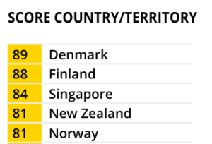 - उच्च प्रदर्शन करने वाले देशों की संख्या में कमी: 80 से अधिक स्कोर वाले देशों की संख्या एक दशक पहले 12 थी, जो इस वर्ष घटकर केवल 5 रह गई (डेनमार्क, फिनलैंड, सिंगापुर, न्यूज़ीलैंड, नॉर्वे)।